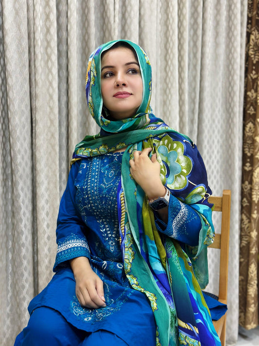 Embroidered Zink Blue Unstitched 3 Pcs
